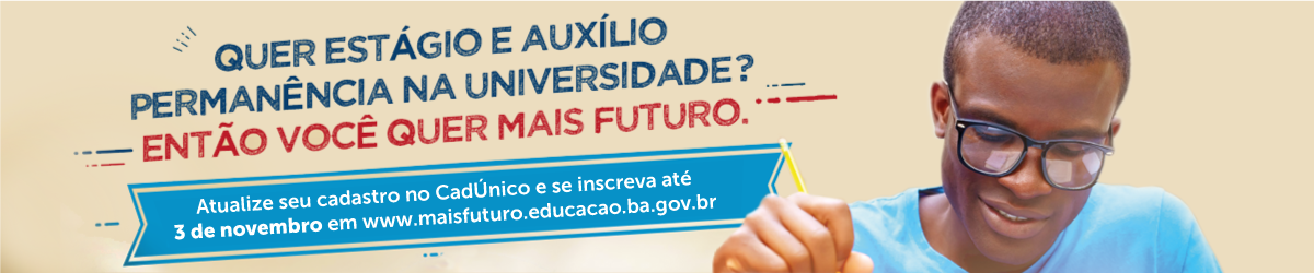 O Governo da Bahia anuncia que a segunda etapa do programa Mais Futuro está com inscrições abertas até o dia 03 de novembro. A iniciativa oferece auxílio financeiro e Estágio remunerado aos estudantes das quatro universidades estaduais que estejam em condições de vulnerabilidade socioeconômica. Para se inscrever, acesse o este link.