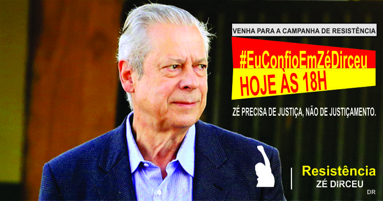 Será lançada oficialmente hoje, 25, às 18h a Campanha de apoio ao ex-ministro Zé Dirceu. Intitulada de “Resistência Zé Dirceu”, os seus organizadores prometem denunciar a perseguição, que segundo eles, vem sofrendo o líder do Partido dos Trabalhadores.