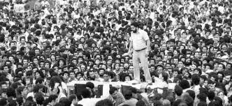 Os trabalhadores, como as mulheres, deveriam ser leais e obedientes. Mas tem sempre um agitador de fora pra atrapalhar o sono da burguesia. Não dá pra parar um rio, quando ele corre pro mar, não dá pra calar um Brasil, quando ele quer cantar.