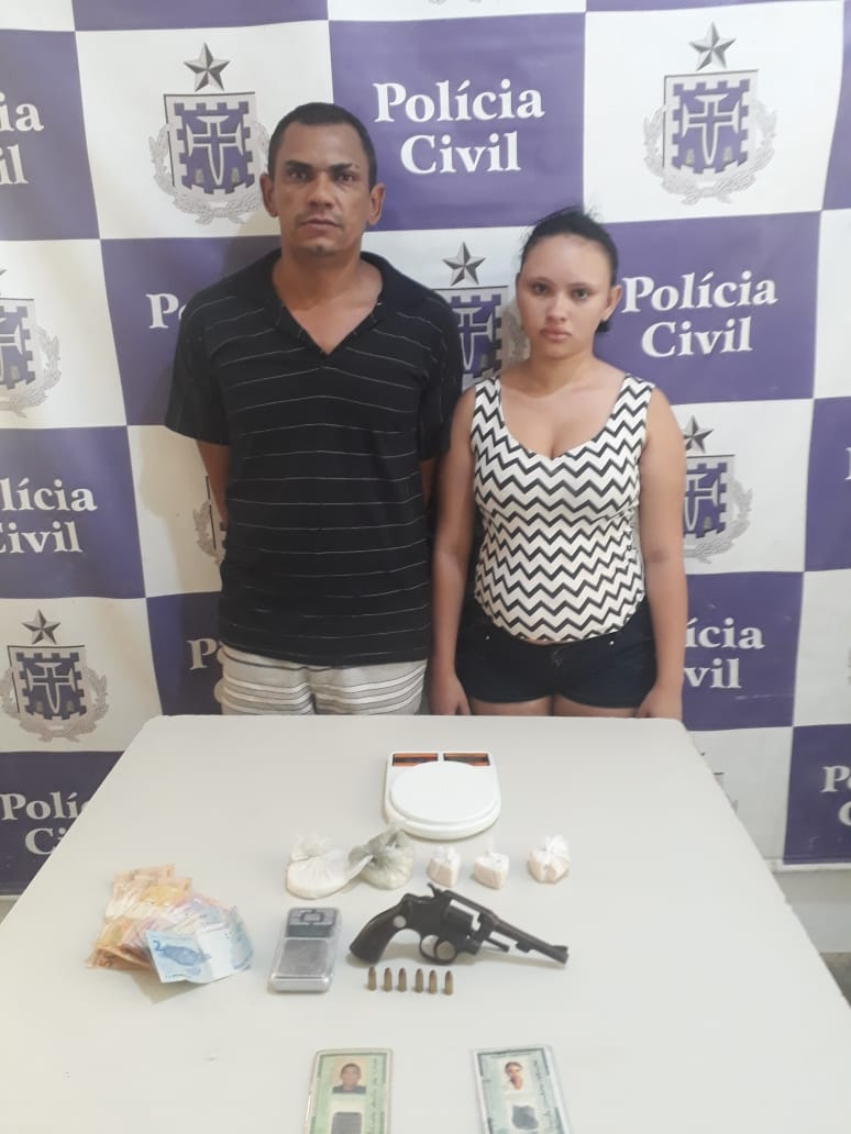 O casal Evandro e Gracieli, apresentado pelos policiais na Delegacia de Tóxico e Entorpecentes (DTE), de Juazeiro, foi localizado em Alto Maravilha. Com eles foram apreendidos um revólver calibre 32, porções de crack e cocaína, duas balanças de precisão e mais de R$ 150, em espécie.