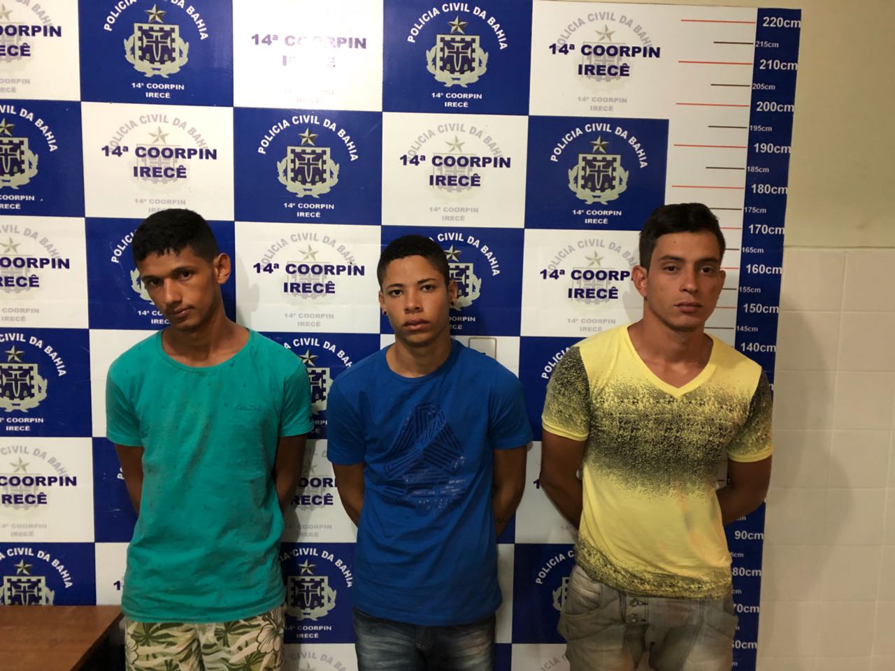 Policiais do Serviço de Investigação (SI), da Delegacia Territorial (DT), de Irecê, localizaram e prenderam em flagrante Fabiano Novais, Jailton Pires Souza e Anísio de Amorim Melo, na segunda-feira (26).
