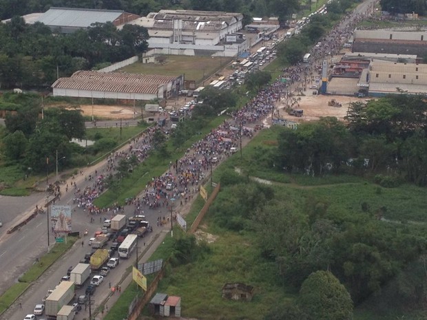 No início da manhã, os moradores se reuniram na praça matriz da cidade com faixas e cartazes e saíram em caminhada até a rodovia. Homens da Polícia Militar e da PRF acompanham a manifestação que reúne cerca de mil pessoas. Com a interdição, o tráfego de veículos ficou lento na área.