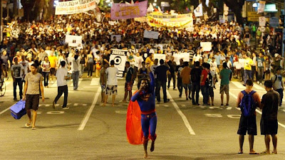 E aí começamos a nos perguntar: mas que movimento é esse? Quem está arquitetando e mobilizando as manifestações? Serão os partidos políticos de extrema direita ou extrema esquerda? Que ligação tem esse movimento com o que vem acontecendo em outros países, como Líbia, Egito, França e Turquia? Como estabelecer mesas de negociações, se o movimento não está organizado por nenhuma instituição e não tem alguém autorizado, por eles, para lhes representar em uma mesa de negociação? E a pergunta que não quer calar: até quando vai essa onda de protesto? Sera que vai até o final da Copa das Confederações? Seria um ensaio para a Copa do Mundo de 2014?