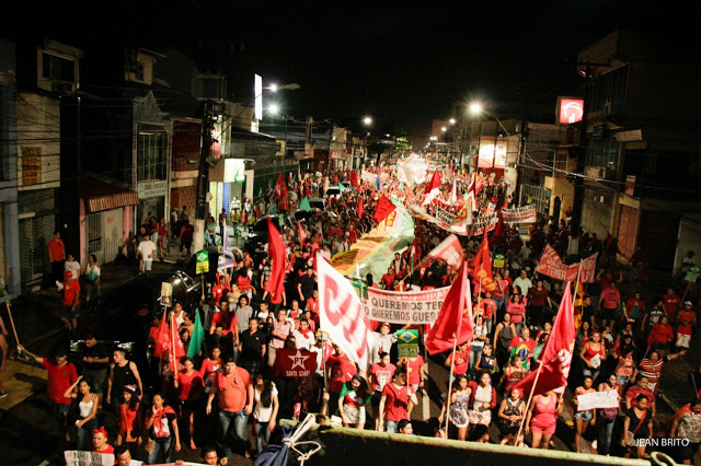 Ontem (31.03) cerca de 30 mil pessoas participaram em Belém da manifestação em defesa da democracia e contra a tentativa de golpe que vem sendo orquestrado pelas elites. A manifestação saiu da Praça Mártires de Abril em São Braz e seguiu até a Aldeia Cabana, onde encerrou com um show que reuniu diversos artistas paraenses. Com gritos de protestos contra a tentativa de golpe uma multidão caminhou pela av. Jose Bonifácio, depois Av. Duque de Caxias, seguindo por Trav. Mauriti e Av. Pedro Miranda. Não faltaram acenos e manifestações de apoio por parte dos moradores no trajeto. Esteve à frente desta manifestação a Frente Brasil Popular e a Frente Povo Sem Medo. Mas que também contou com a mobilização da articulação de juristas, advogados e intelectuais paraenses que tem se organizado para lutar em defesa da democracia e da legalidade.