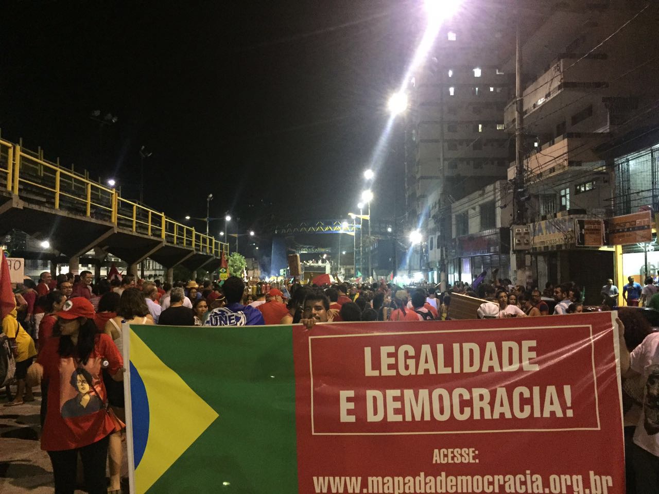 Ontem (31.03) cerca de 30 mil pessoas participaram em Belém da manifestação em defesa da democracia e contra a tentativa de golpe que vem sendo orquestrado pelas elites. A manifestação saiu da Praça Mártires de Abril em São Braz e seguiu até a Aldeia Cabana, onde encerrou com um show que reuniu diversos artistas paraenses. Com gritos de protestos contra a tentativa de golpe uma multidão caminhou pela av. Jose Bonifácio, depois Av. Duque de Caxias, seguindo por Trav. Mauriti e Av. Pedro Miranda. Não faltaram acenos e manifestações de apoio por parte dos moradores no trajeto. Esteve à frente desta manifestação a Frente Brasil Popular e a Frente Povo Sem Medo. Mas que também contou com a mobilização da articulação de juristas, advogados e intelectuais paraenses que tem se organizado para lutar em defesa da democracia e da legalidade.