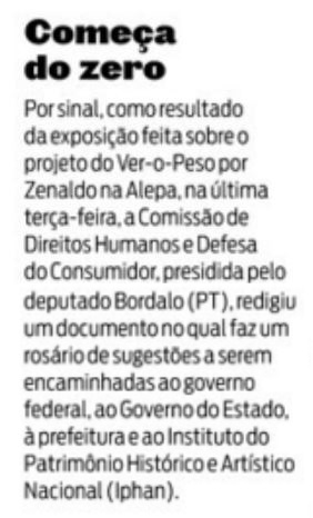 A coluna do jornalista Guilherme Augusto, no jornal Diário do Pará deste domingo (28) revela a luta de alguns vereadores e deputados estaduais de oposição, que assim como o MP e o IPHAN tentam dar transparência ao projeto desenvolvido às portas fechadas pelo prefeito Zenaldo Coutinho (PSDB).