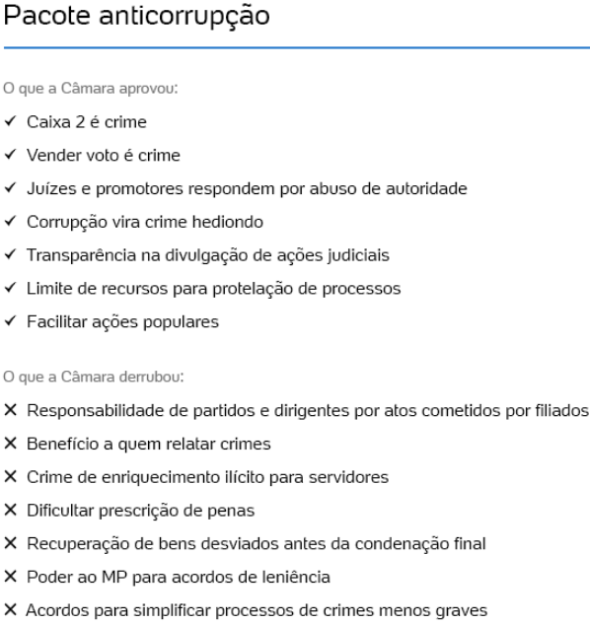 Abaixo ainda sem redação final, o que foi aprovado e o que foi rejeitado do pacote: