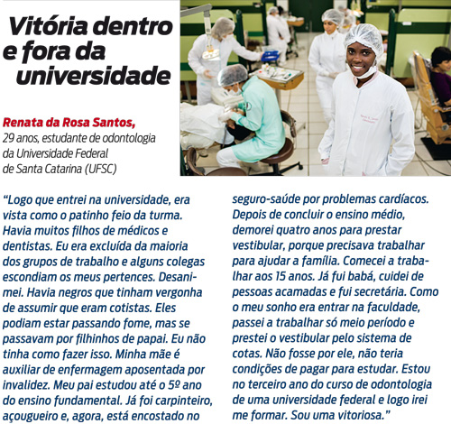 esforço diferenciado do aluno cotista, que agarra essa oportunidade como