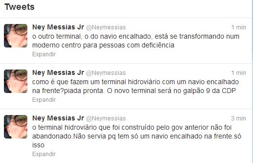 comunicação, quem se proclama no twitter como ilusionista, lançar uma desculpa esfarrapada e mentir ao dizer que um navio estava lá quando a Marinha do Brasil autorizou o uso do local, tendo inclusive contado com todas as licensas ambientais para o início das obras.