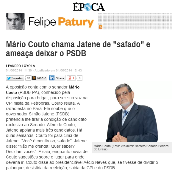 O colunista Felipe Patury famoso por não escrever nada positivo do PT e do PMDB, escarrou a matéria mais comentada nas redes sociais e replicadas por jornalecos Brasil à fora: Chapa maluca lança filho de Jader a governador do Pará.