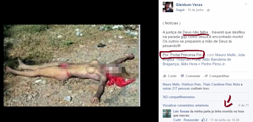 Dois dias após a tradicional festa da Marujada de Bragança, onde cerca de 300 mil pessoas participam da procissão em homenagem a São Benedito, padroeiro da cidade localizada no nordeste do Pará, uma denúncia de um caso de homofobia revoltou a população LGBT do município e sensibilizou diversas pessoas que passaram a comentar e postar nas redes sociais, suas opiniões a respeito do episódio.