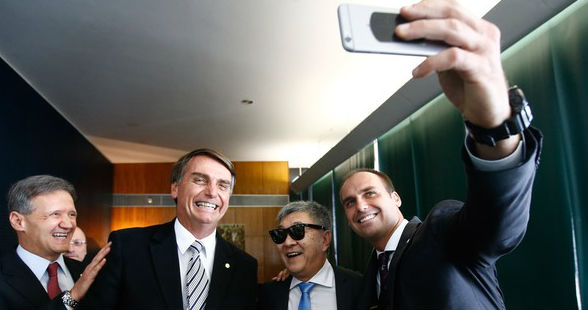 Bolsonaro e o filho fizeram questão de postar uma “selfie” com a “celebridade”.