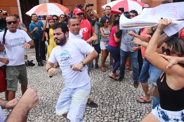 Imagens registradas neste domingo (1º), tanto por manifestantes, quanto por veículos de imprensa, na praça da República em Belém do Pará, mostram um confronto entre manifestantes que participavam do ato convocado pela Frente Brasil Popular e a Frente Povo sem Medo e um grupo de fascista que chegaram ao local com provocações e entoando palavras de ordem, exaltando o nome do deputado federal Jair Bolsonaro (PSC-RJ).