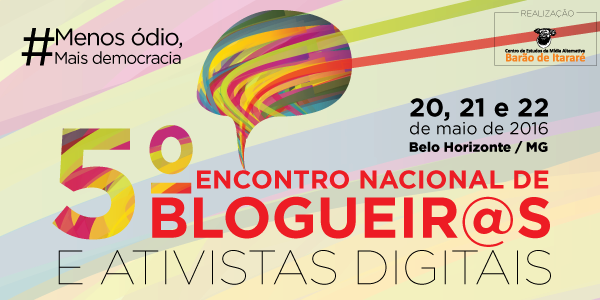 Em Belo Horizonte-MG, o Hotel Othon está lotado para a abertura do 5* Encontro Nacional de Blogueir@s e Ativistas Digitais, com a participação da presidente Dilma, em sua primeira atividade política, depois de ter sido afastada do poder. Mais de 400 participantes de todas as regiões do Brasil fazem até domingo (22), um amplo debate sobre a democratização da mídia no Brasil, com o tema #MenosÓdioMaisDemocracia. A programação segue até meio dia do domingo e será transmitido ao vivo, pelo portal da TVT e diversos blogs e fanpages.