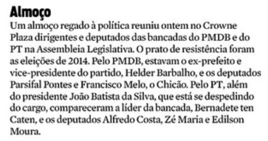 Diante deste quadro, o PMDB consolida-se como um dos partidos mais estratégicos e importantes no tabuleiro eleitoral da eleição que se aproxima e não foi à toa que o atual governador Simão Jatene, desceu de seu pedestal para ir ao encontro do atual presidente estadual do PT-PA para pedir-lhe que o partido lança-se candidatura própria. Não deu certo, Lula já tinha feito o que achava que deveria para garantir a vitória de Dilma no cenário federal e do PMDB no Pará. Tá dando certo!