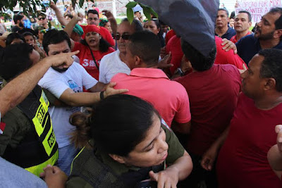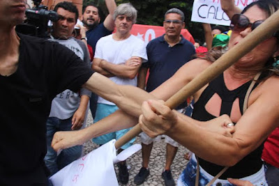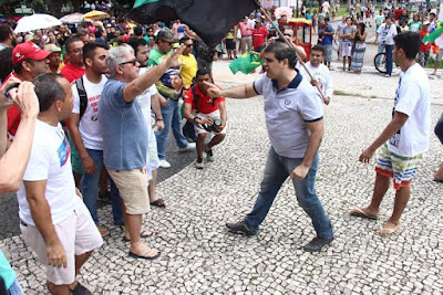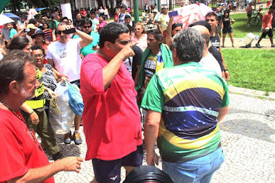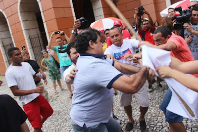 Imagens registradas neste domingo (1º), tanto por manifestantes, quanto por veículos de imprensa, na praça da República em Belém do Pará, mostram um confronto entre manifestantes que participavam do ato convocado pela Frente Brasil Popular e a Frente Povo sem Medo e um grupo de fascista que chegaram ao local com provocações e entoando palavras de ordem, exaltando o nome do deputado federal Jair Bolsonaro (PSC-RJ).