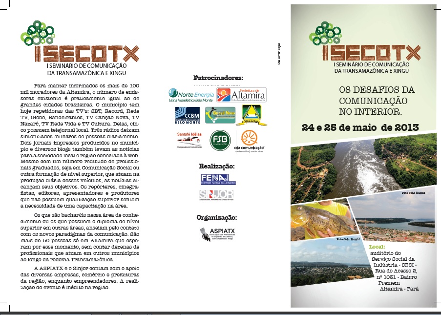 Pelo Facebook do jornalista contratado por uma empresa que presta serviço de Assessoria de Imprensa ao Consórcio Belo Monte, descobri que o SINJOR-PA e a FENAJ irão realizar o I Seminário de Comunicação da Transamazônica e Xingú com o objetivo de capacitar os profissionais que lá estão, para que mesmo sem o