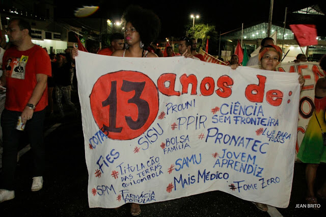 Até mesmo militantes que fazem oposição à Dilma, estavam presentes no ato que entra para a história como um marco onde anarquistas, a base do PSOL, petistas filiados e que há tempos não militam mais, ou que estavam contrariados com o governo, foram manifestar sua defesa pela manutenção do rito democrático, ameaçado por forças conservadoras insufladas por partidos da oposição e setores da mídia e do judiciário brasileiro.