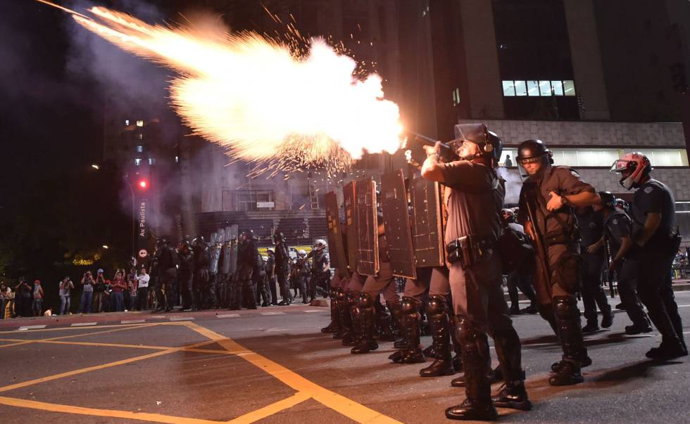 Enquanto isso, professores que reivindicam aumentos salariais e melhores condições de trabalho e estudantes que se juntam para lutar e manterem suas escolas abertas, levam bala de borracha, porrada de cassetes, bombas de gás, pimenta e efeito moral, muitas vezes cegando e ficando com sequelas pro resto de suas vidas, Tá certo isso?