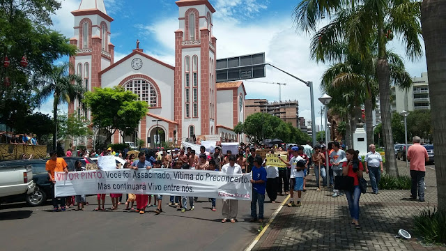 Segundo informações do Conselho Indigenista Missionário (CIMI), a tarde desta quarta-feira (6) foi marcada de dor e revolta, na manifestação de cerca de 600 pessoas, entre indígenas dos povos Guarani Mbyá e Kaingang e não-indígenas, que participaram de atos em protesto pela morte do menino Kaingang Vítor Pinto, de dois anos, assassinado há uma semana na rodoviária de Imbituba (SC) enquanto era alimentado no colo de sua mãe.
