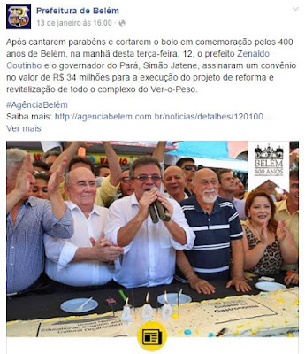 Mesmo esquecendo falar que até o recurso para o projeto foi da União, a nota do IPHAN desmascara de forma contundente, que se o projeto de reforma do ver-o-peso não está adiantado é por exclusiva responsabilidade da prefeitura e não o que tem sido divulgado pela equipe de marketing de Zenaldo Coutinho, que o fez dizer nas comemorações do aniversário de Belém, ao lado do governador Simão Jatene, que ambos seriam os únicos responsáveis por aportes de recursos financeiros para a reforma do complexo e esconderam a informação do dinheiro aprovado no PAC Cidades Históricas, assim como um esforço coletivo de parlamentares paraenses para conseguir mais recursos e assim podermos ter um cartão postal mais digno, saudável e confortável.