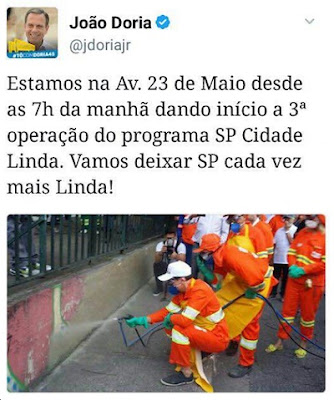 Eleito prefeito de SP, Dória se fantasia de gari e vai varrer ruas e vandalizar paredes grafitadas. |