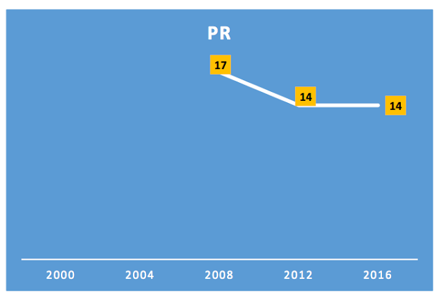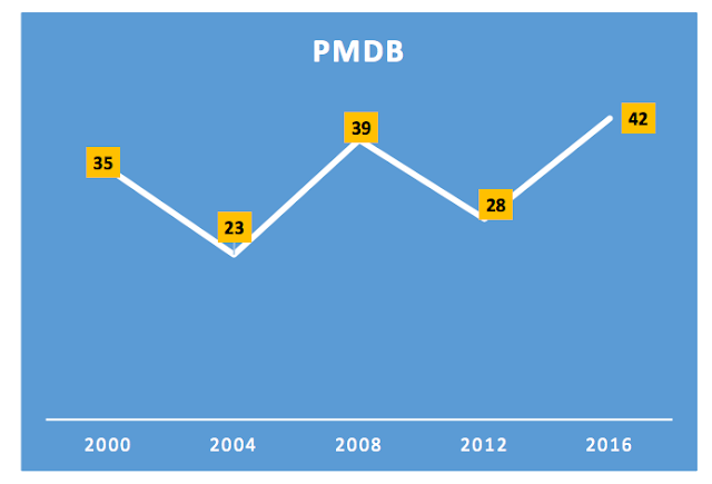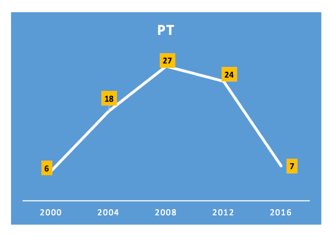 Do ano 2000 até 2012, a diferença vinha sendo equilibrada. No entanto, as eleições de 2016 mostraram que a insatisfação dos eleitores para com os governantes, foi muito maior.