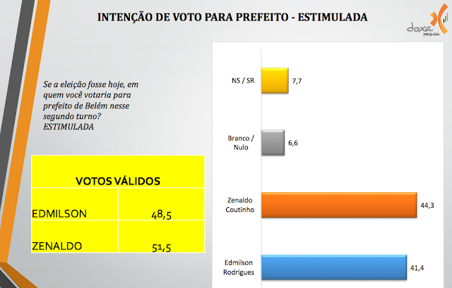 Edmilson cresceu do primeiro para o segundo 10,8%. Zenaldo teve crescimento de 25,9%.