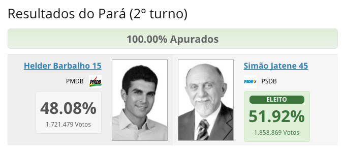 O resultado das urnas foi de 51,92% para Jatene e 48,08% para Helder. Exatamente o que a nossa última pesquisa mostrou.