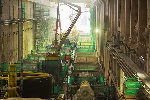 | Construção da casa de força da usina hidrelétrica de Jirau, no rio Madeira. |