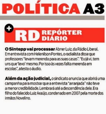 | Na nota, a informação de que o SINTEPP entrará com uma ação judicial contra o radialista e este blog desconfia que também processará a rádio Liberal. |