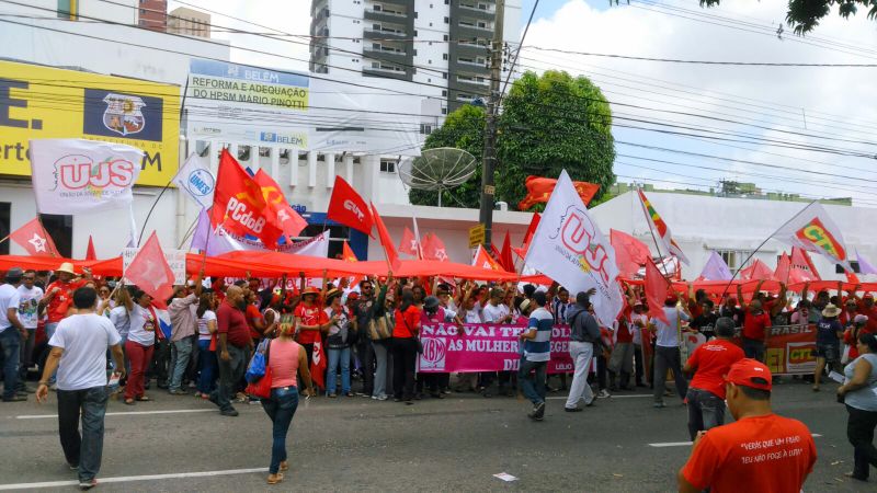 O ato em frente ao PSM, seguida da manifestação que percorreu as ruas do centro de Belém do Pará, na manhã desta quinta-feira (20), foi um pouco diferente das que aconteceram nos demais estados do país. Além de ter uma pauta de reivindicação com assuntos locais, como a agilidade na reforma do Pronto Socorro Municipal e duras críticas às gestões do PSDB, tanto na prefeitura, quanto no governo do estado, os manifestantes mantém vivo um processo de organização iniciado há menos de dois meses e que inclui desde a participação de indivíduos pró e contra Dilma, até pessoas filiadas em partidos e ligadas aos movimentos sociais da esquerda paraense. O consenso fica na defesa por políticas públicas locais e a tentativa de reerguer a força do ativismo social na metrópole da Amazônia.