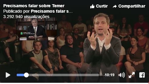 Nesta sexta-feira (15), a página Precisamos falar sobre divulgou um vídeo hilário com o ator. No Teatro de Arena, em São Paulo, preocupado com um possível impeachment da presidente Dilma Rousseff, Duvivier levanta informações e analisa os curiosos presente e o passado político de Temer – mas da melhor forma possível: com bom humor.