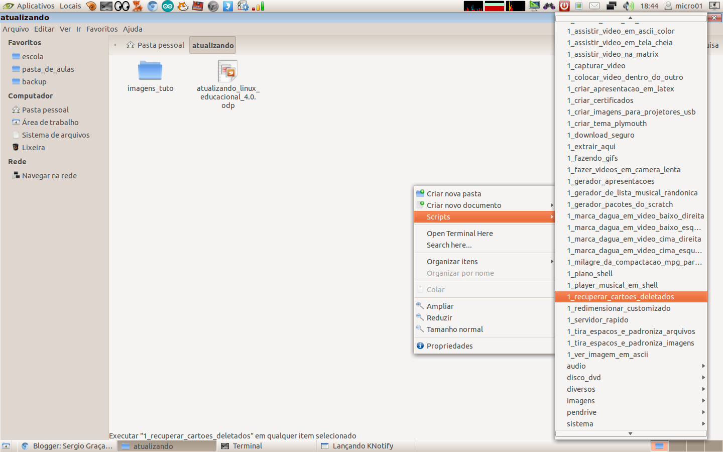 Após os 3 passos acima o Script já estará disponível no menu de contexto do Nautilus.
