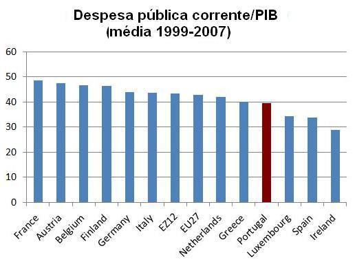 Meus senhores, os dados são simples: Portugal no período 1999-2012 foi um dos Países que menos gastou. Atenção: fala-se aqui de despesas em relação ao PIB, isso é, quanto gastou Portugal tendo em conta a riqueza produzida em todo o País. Portanto, nada de discursos tipo "Portugal produzia pouco e gastava muito": não, estas apresentadas foram as despesas em percentagem, que já consideram a limitada riqueza produzida em Portugal.