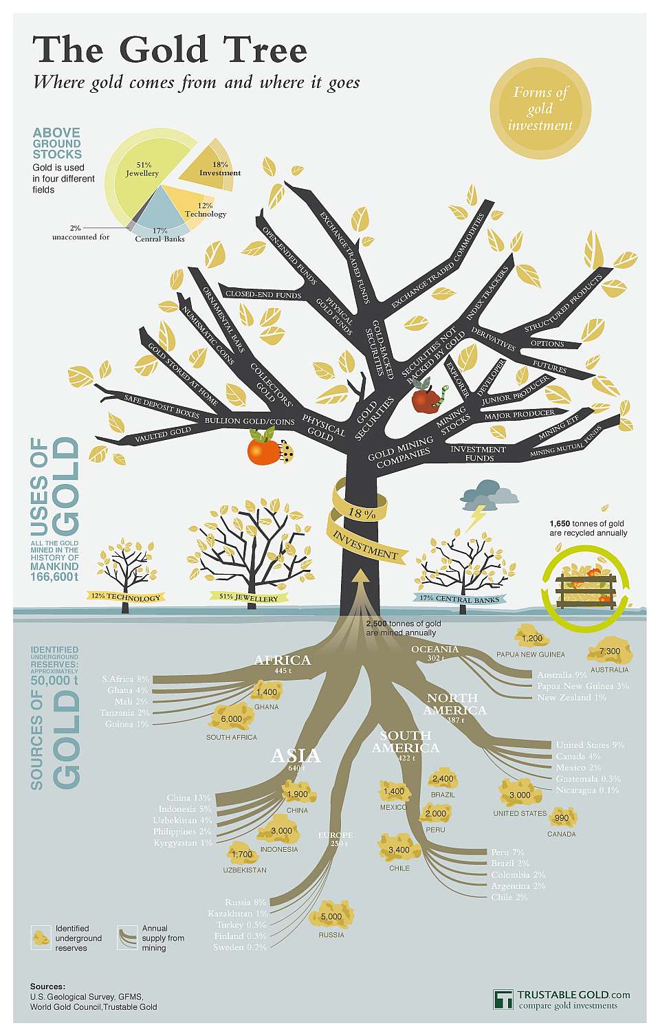 A resposta chega com um gráfico da empresa Trustable Gold, baseado nos dados do U.S. Geological Survey e do World Gold Council. São dados que devem ser encarados com um certo benefício da dúvida, a seguir vamos ver quais as razões.