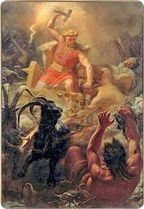 Thor é o deus das pessoas comuns . Era representado como um homem jovial e amigável, de construção pesada, com uma longa barba branca. O seu elemento é o fogo, a sua cor o vermelho. O rugido dos trovões era causada pelo barulho do seu carro. Thor também é o único deus que não monta um cavalo, mas viaja num carro puxado por dois bodes brancos (Cracker e Gnasher). Thor vive nas terra do Norte, onde é dono de um palácio entre os icebergs. É considerado um deus alegre e amigável, bem-humorado e protector dos seres humanos. Além disso, a tradição diz que a chaminé é particularmente sagrada para Thor, pois ele pode ver as pessoas descendo pela chaminé através do seu elemento, ou seja: o fogo.
