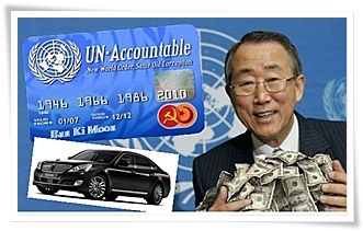 O Secretário, Ban Ki Moon, acaba de fazer-se dois presentes agradáveis: um novo escritório redecorado (custo: 2 milhões de Dólares. Como no caso da sede do Banco Europeu, o anterior era uma vergonha, cheio de bolor) e um novo carro blindado que substitui o velho Mercedes 500 Series (já com 5 anos de idade, uma vergonha). Carro que foi apresentado envolvido numa enorme fita vermelha, como relata o Washington Post.
