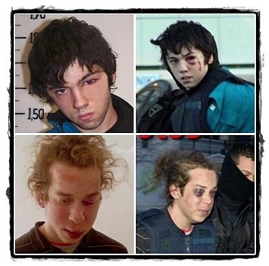 Entretanto a polícia observa e quando pode faz algo. Como por exemplo massacrar quatro rapazes anárquicos que tinham confessado (na foto à direita): "Sim, fomos roubar num supermercado e depois partilhámos tudo com as pessoas nas ruas".