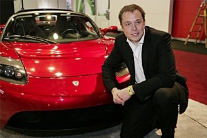 | Elon Musk com um Tesla Roadster |