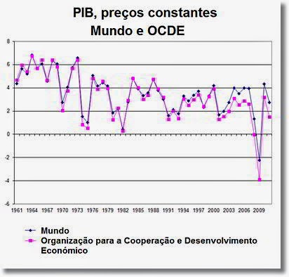 Porque mais 1, 2 ou 3% do PIB não significa mais trabalho: já não estamos numa economia de produção e de trocas comerciais (aquela de Adam Smith, do Século XVIII). Decresce porque a inovação tecnológica, a indústria dos serviços empregam menos, porque as produções estão saturadas, porque os produtores multiplicaram-se mais do que os consumidores.