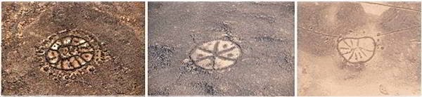 São consideradas pelos arqueólogos como a versão medi-oriental das Linhas de Nazca, os famosos pictogramas gigantes desenhados no chão no deserto do Peru.Os arqueólogos envolvidos no estudo definem estas estruturas circulares Wheels of Stone, as Rodas de Pedra: são milhares e têm uma grande variedade de modelos, com uma coisa em comum: os raios que partem do centro da figura.