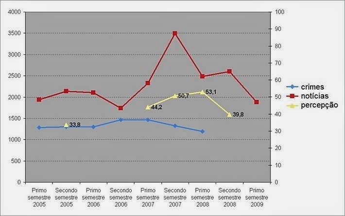 Vice-versa, a percepção da criminalidade entre os cidadãos cresceu, seguindo de perto o aumentar ou o diminuir das notícias "criminosas" na televisão.