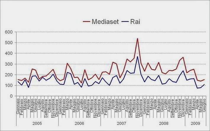 Vamos ver também quais as deferências entre redes públicas (Rai) e privadas (Mediaset, grupo Berlusconi).