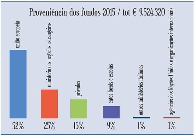 O navio Aquarius pertence à ONG SOS Mediterranee (ONG alemã), a qual opera em colaboração com a Cospe, associação "humanitária" (uma ONLUS) italiana. O site de SOS Mediterranee é bem pouca coisa e nem especifica donde provenham os seus fundos. Eis, pelo contrário, a proveniência dos fundos da Cospe para o ano de 2015 (o último disponível):