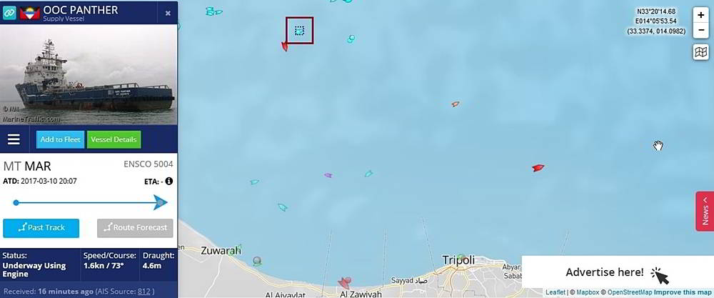 No gráfico abaixo é possível observar a rota do navio Aquarius no passado dia 21 de Março, tendo este partido das costas da Líbia e tendo mais tarde chegado ao porto de Catania (Sicilia, Italia) após uma paragem na ilha de Malta: