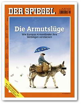 No meio destes dados negativos, eis que na Alemanha começa uma campanha contra os ricos Espanhóis e Italianos. Não, não é uma piada: segundo o Banco Central Europeu, os Países do Sul Europa são ricos, mas ricos mesmo. Muito mais ricos do que os Países do Norte. Só que escondem esta riqueza. Óbvio que uma notícia como esta tenha sido utilizada como capa no conceituado Der Spiegel.