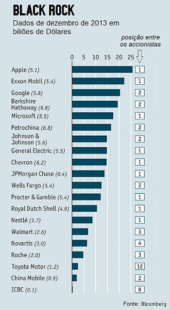 A Karpova, por exemplo, esquece-se de como um só dos Quatro Grandes, a Black Rock, seja o principal accionista das seguintes empresas: Apple, ExxonMobil, Microsoft, General Electric, Chevron, Procter &Gambles, Shell e Nestlé.