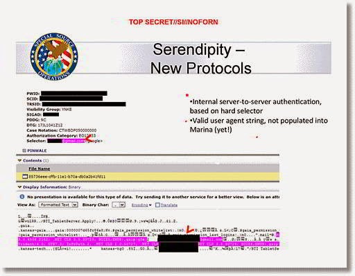 O Washington Post também publicou algumas imagens produzidas pela NSA: algumas mostram formatos de dados utilizados apenas em servidores da Google, assim como aquele que parece ser o protocolo binário RPC, e que a empresa sediada em Mountain View nunca publica; representa o protocolo para procedimentos de chamadas remotas das máquinas utilizadas por Google a confirmação do facto de que estas máquinas estão a conversar entre elas.