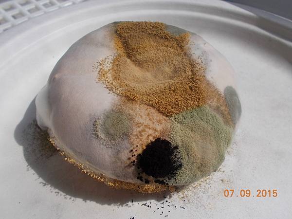 Em qualquer caso, o bolor não interessa apenas o pão: na seguinte imagem é possível observar o queijo (ou aquela coisa que no McDonald's definem como tal) que colava do interior e que sofreu o mesmo destino "abolorado":